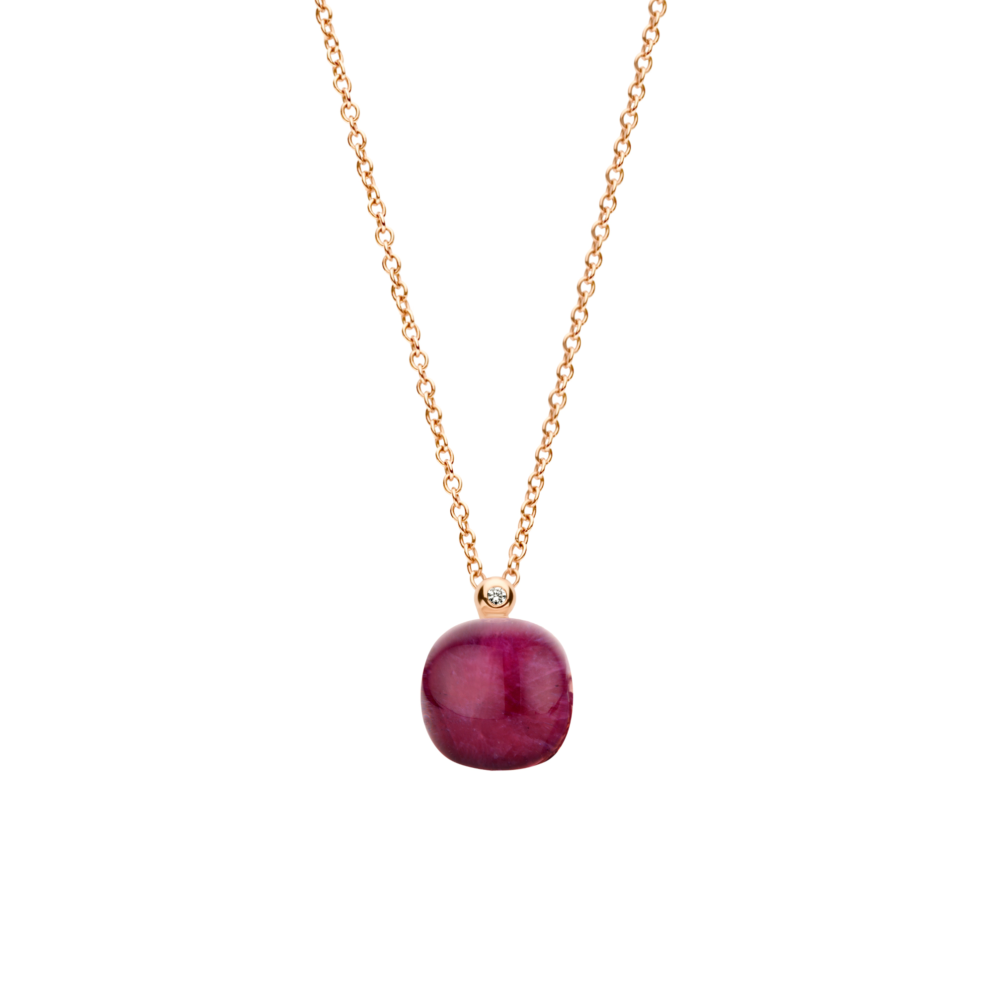 Ref. 20H34Ramrubmp_45 - Diese Mini Sweety Halskette mit Anhänger ist aus 18 Karat Roségold gefertigt und mit Amethyst, Rubin und charakteristischen Diamanten von 0,02 Karat verziert.