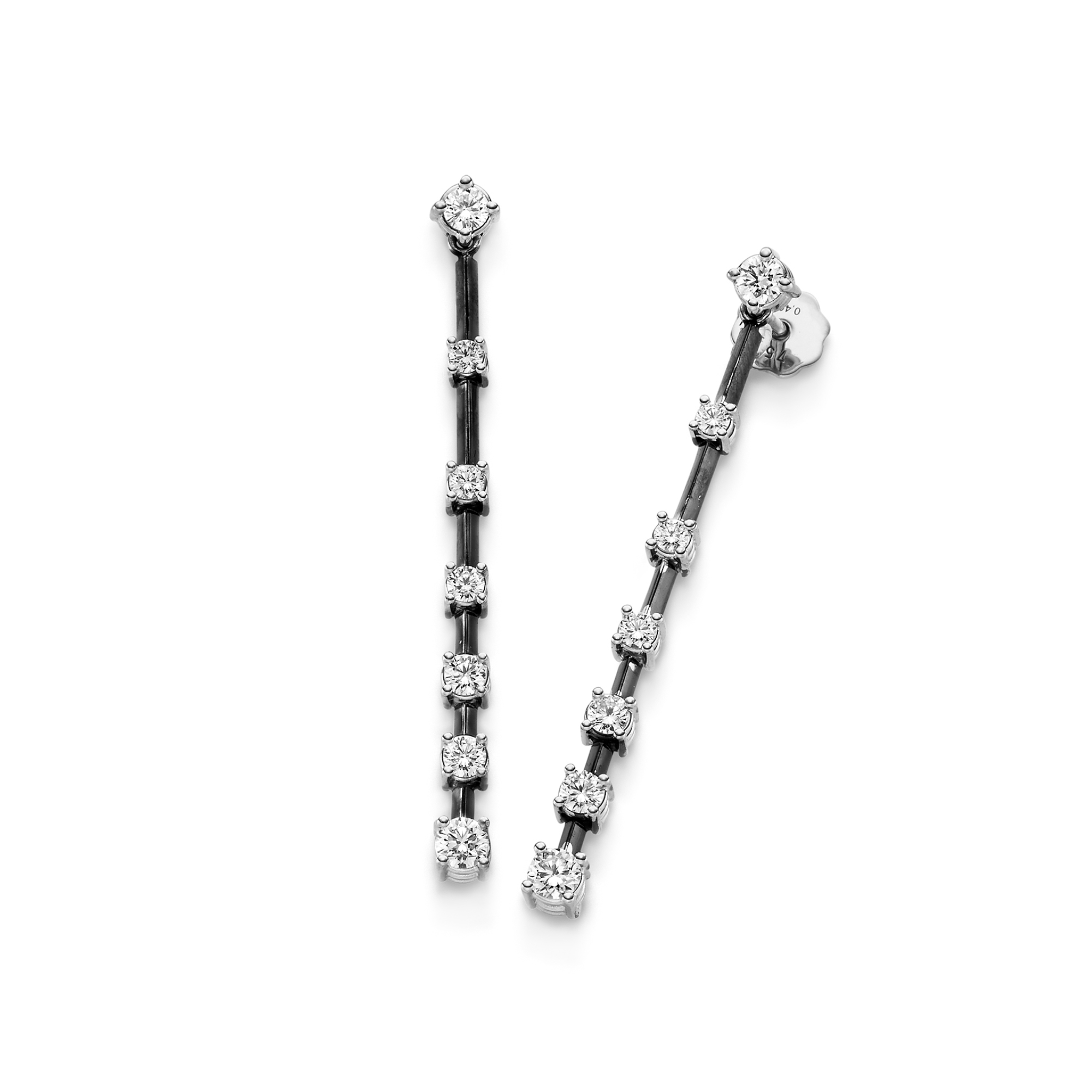 Ref. 41-0785671-1000 - Diese Ohrstecker werden zum faszinierenden Kontrastspiel und besonderem Highlight am Ohr. Schwarz rhodiniertes Weißgold rückt die weißen Brillanten in ihrer ganzen lebendigen Faszination in den Vordergrund. Sie wirken wie Tautropfen, die einen Zweig benetzen und das Licht in ihrer kreisrunden Form einfangen.