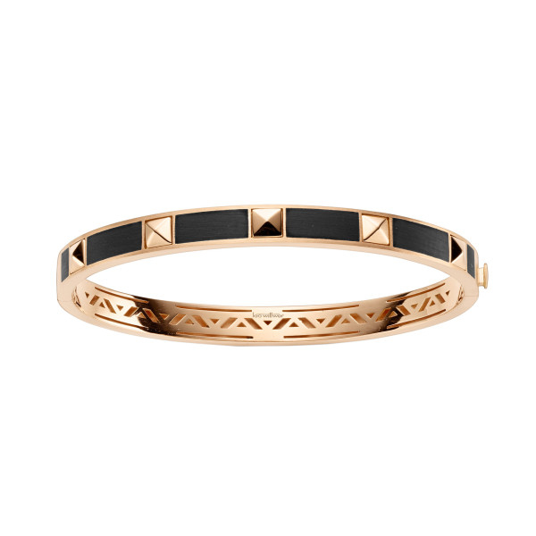 Ref. 67-1029073-0000 - Dieser elegante Armreif setzt ein Statement mit modernem Look-and-Feel. Warmes Roségold und schwarzes Kaltemaille sorgen für einen interessanten Kontrast. Aufgesetzte geometrische Elemente aus poliertem Roségold bilden einen markanten Blickfang, der dem Armreif einen besonderen Charakter verleiht.