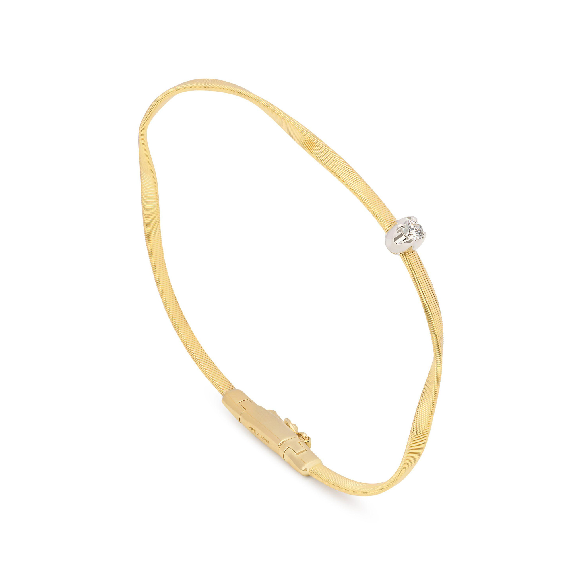 Ref. SG337 B8 YW - Dieses einreihige, gedrehte Armband aus 18-karätigem Gelbgold zeigt eine schlichte und raffinierte Linienführung und wird mit der exklusiven Coil-Technik gefertigt. Der Diamant in Brillantschliff ist Ausdruck einer diskreten und zeitlosen Eleganz.