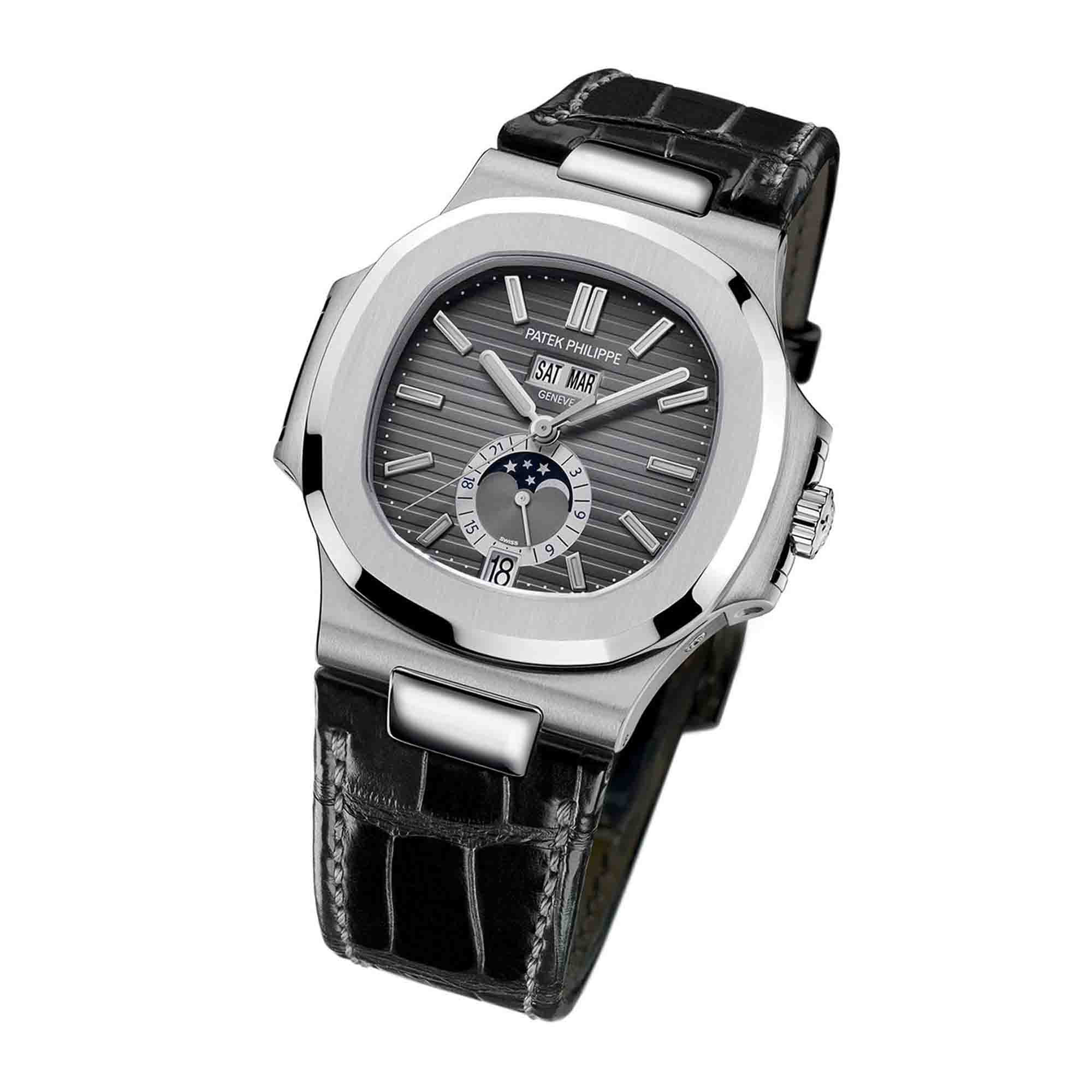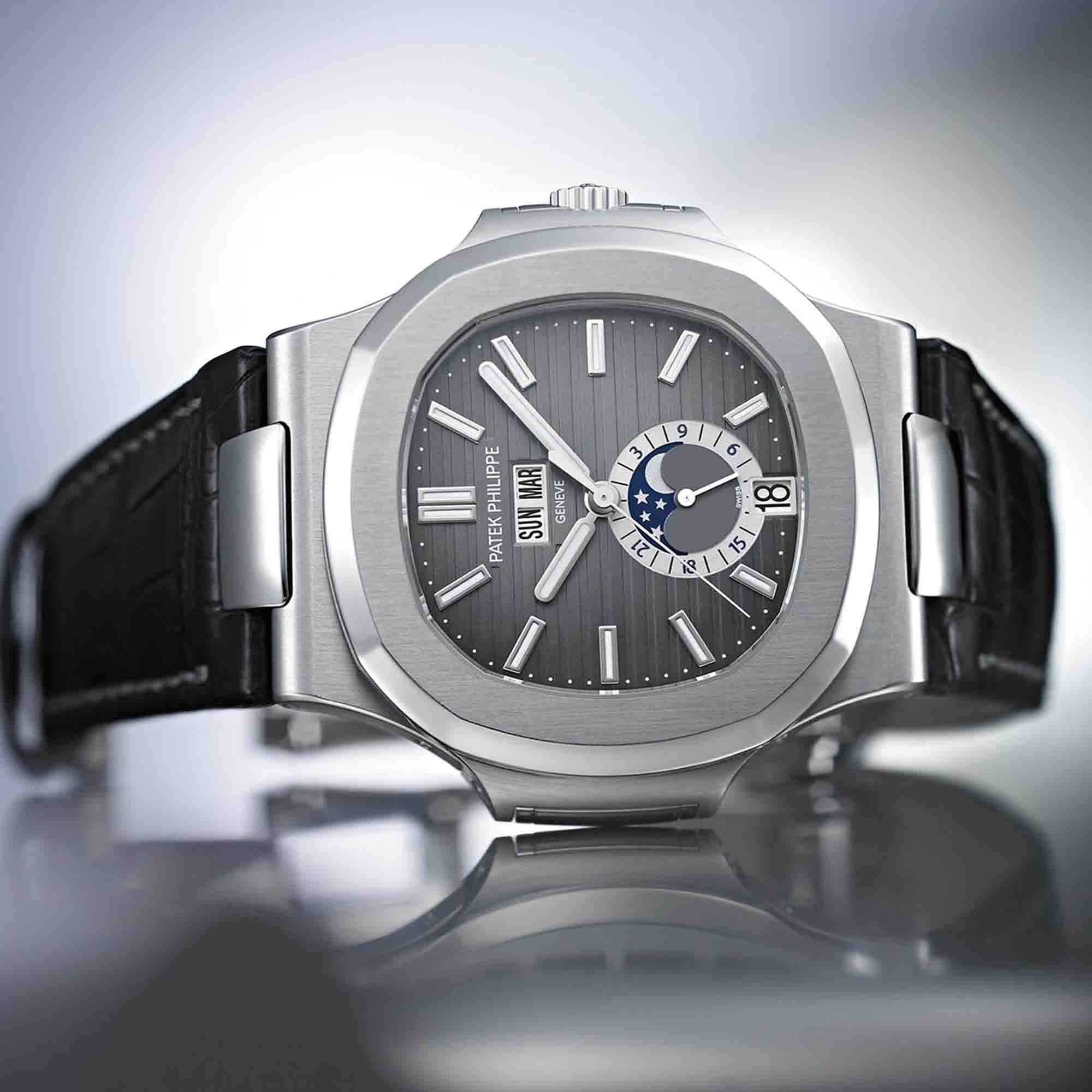 Ref. 5726A-001 - Mit ihrer von Bullaugen inspirierten Gehäusekonstruktion, der achteckigen Lünette mit abgerundeten Ecken und dem Zifferblatt mit dem horizontalen Prägedekor ist die Nautilus seit 1976 die perfekte Verkörperung sportlicher Eleganz. Heute besteht die Nautilus Kollektion aus zahlreichen Damen- und Herrenarmbanduhren in Edelstahl, Roségold, Weißgold oder Bicolor-Ausführungen, die sich in einen aktiven Lebensstil einfügen.