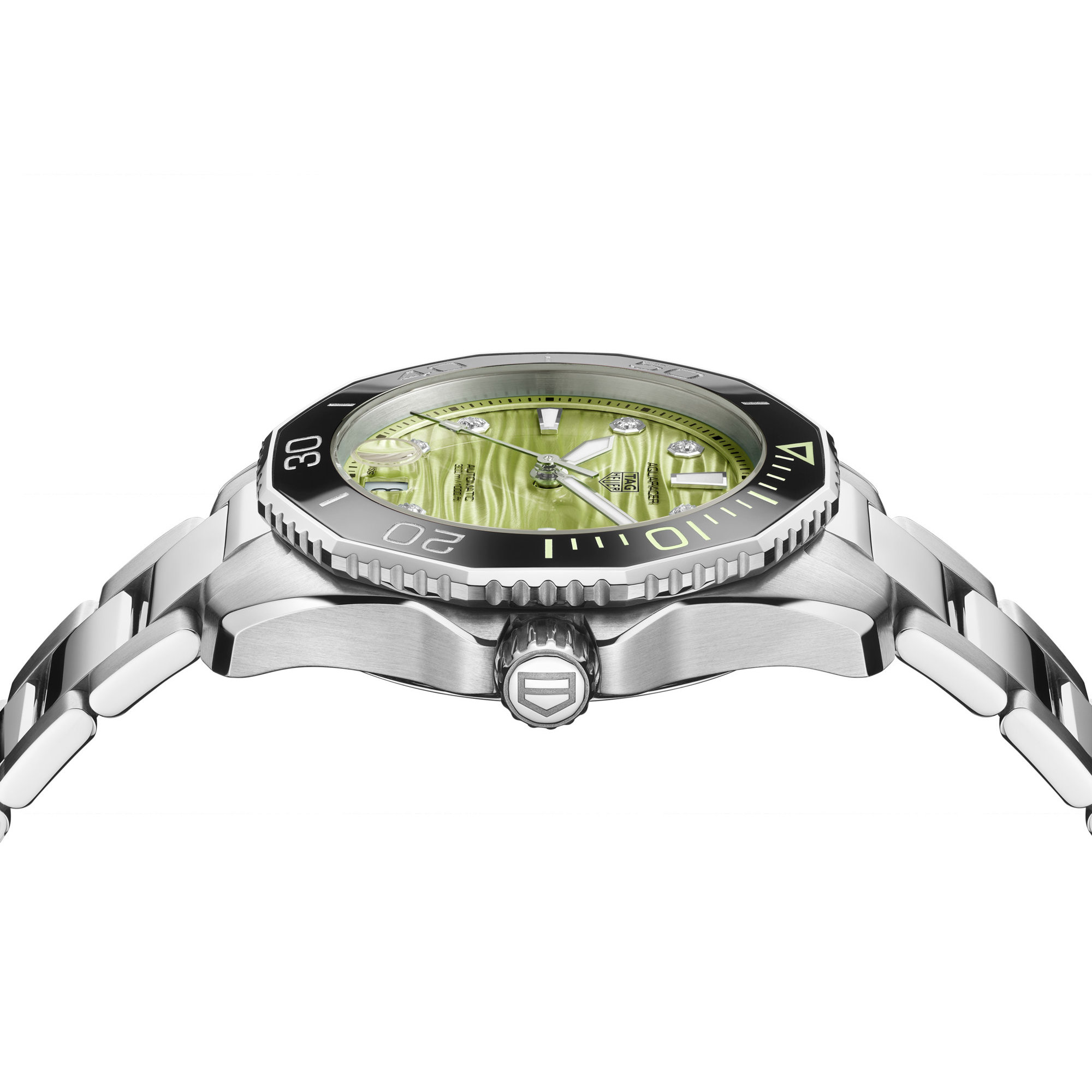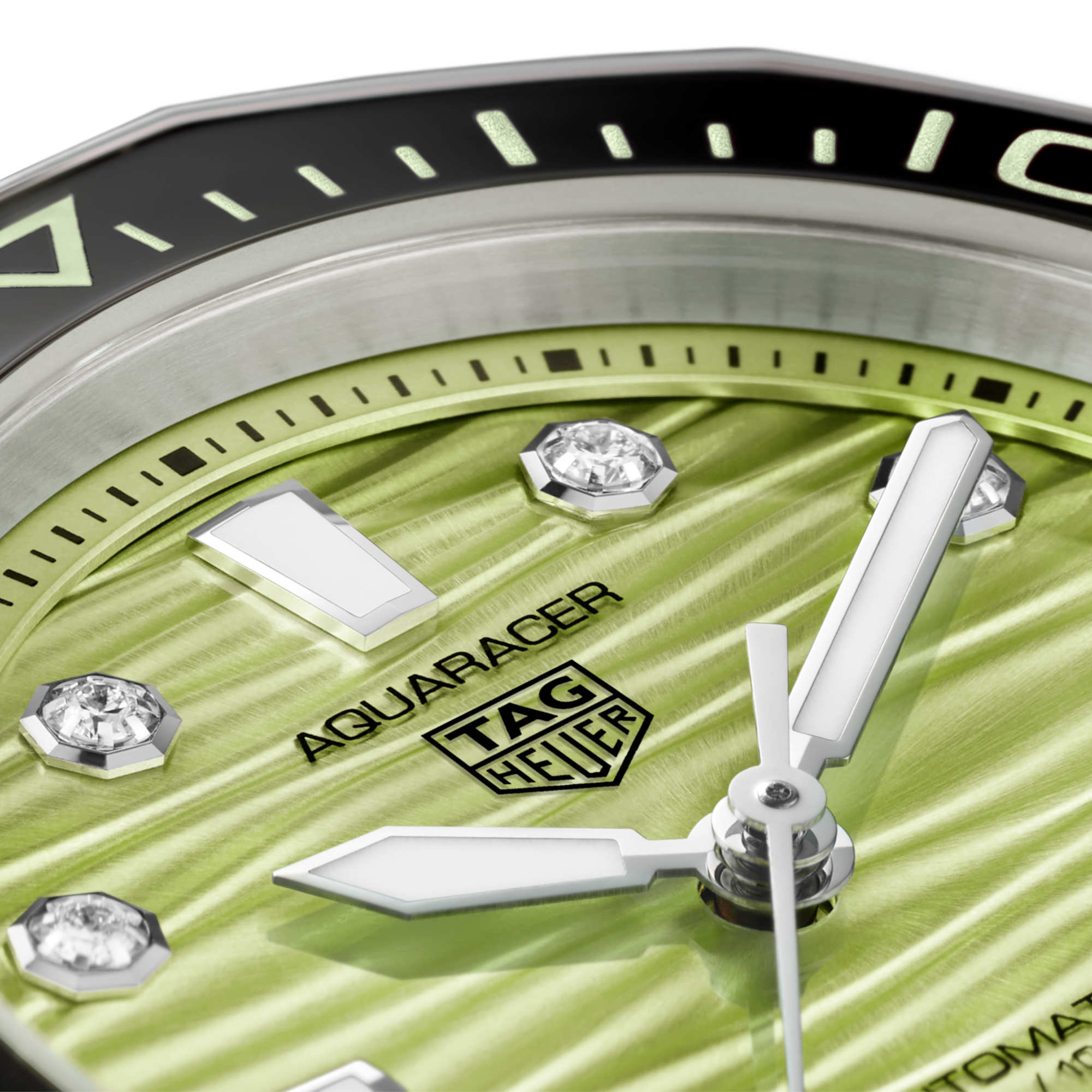 Ref. WBP231L.BA0618 - Mit einem leuchtend pastellgrünen Zifferblatt und einem robusten Erscheinungsbild ist die TAG Heuer Aquaracer Professional 300 Date sowohl bereit für dunkle Tiefen als auch für sonnendurchflutete Ufer. Sie hält den tosenden Kräften des Meeres stand und kombiniert gleichzeitig Eleganz mit äußerst raffinierten Tauchfunktionen.